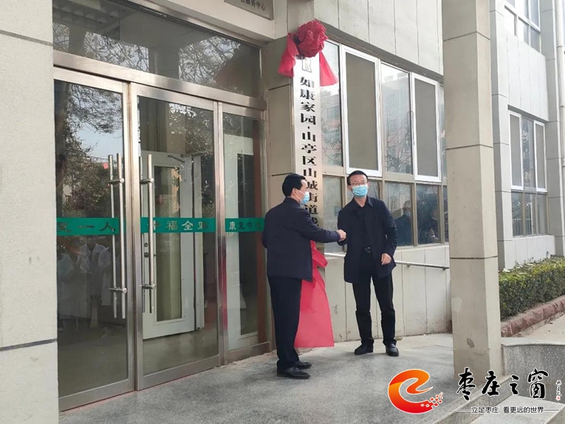 山亭區(qū)殘聯(lián)理事長徐金發(fā)和山城街道黨工委副書記、辦事處主任賈繼勇共同為山城街道如康家園揭牌。